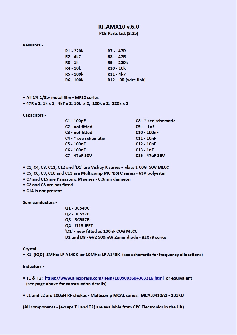 Excellent value, in my opinion ... The parts list for the PCB is shown below...